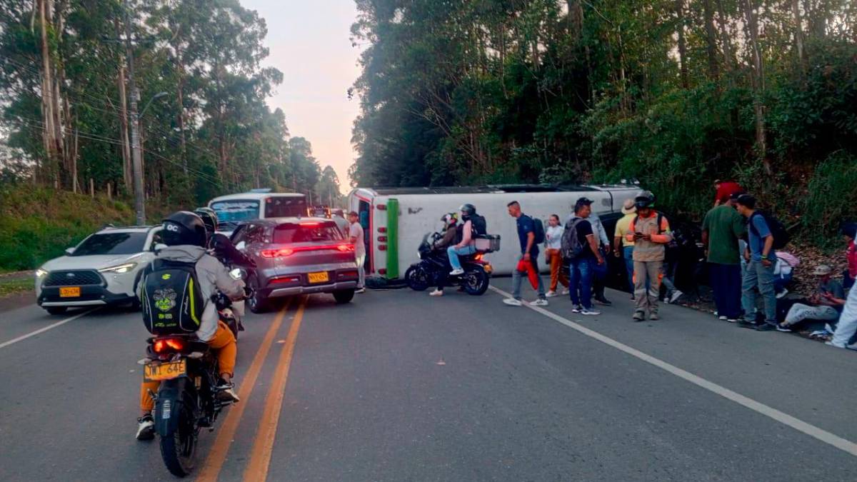 Los hechos se registraron en este corredor, a la altura del restaurante Marmoleo, al parecer luego de que el bus, por cuenta de una falla mecánica, habría perdido el control y terminó invadiendo el carril contrario, provocando el choque frontal y el posterior volcamiento lateral este automotor, no sin antes colisionar con el particular.