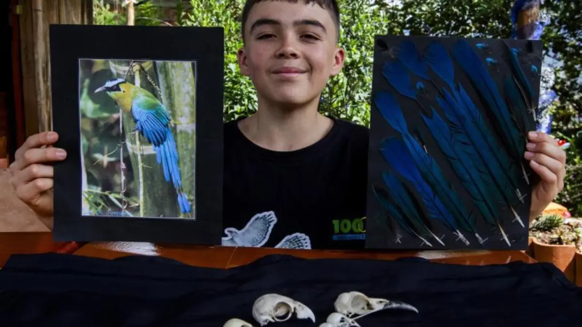 El joven, que vive en la vereda Serranías de este municipio, ya sueña con ser biólogo. A su corta edad posee una gran colección de plumas de diferentes especies.