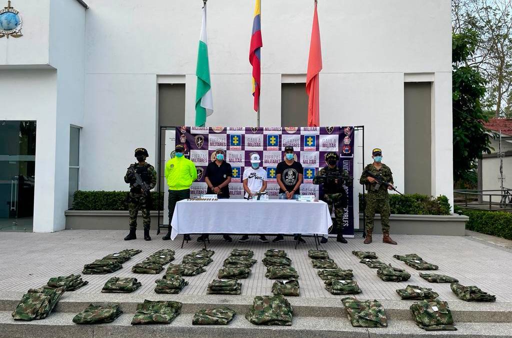 Durante la operación también se incautaron una pistola calibre 9 milímetros, un proveedor para la misma, 100 cartuchos calibre 9 mm, tres celulares y 36 uniformes de uso privativo de la fuerza pública.