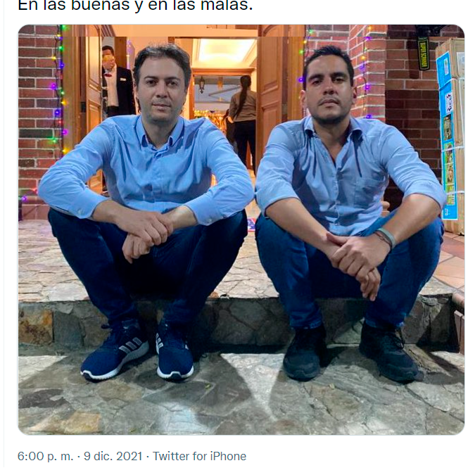 Apenas unas horas después de que se confirmara la decisión del Consejo de Estado de despojarlo de su curul, Quintero publicó en su cuenta de Twitter una foto con un mensaje de respaldo a Flórez: “en las buenas y en las malas”.