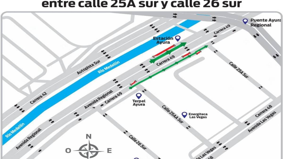 EPM informó que realizará cierres parciales en algunos tramos de la Avenida Regional a la altura de la calle 26 Sur (cerca de la Estación Ayurá del Metro) en el municipio de Envigado.