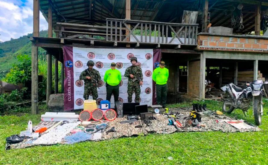 El pasado fin de semana, tropas del Ejército hallaron tres fábricas en el Norte de Antioquia donde se fabricaban explosivos y que operaban bajo la fachada de talleres de carpintería en la vereda El Morro, en el municipio de San Andrés de Cuerquia. Según precisó la Fuerza Pública, los explosivos pertenecerían a las estructuras 18 y 36 de las disidencias, bajo las órdenes de alias Calarcá y Firu, respectivamente.