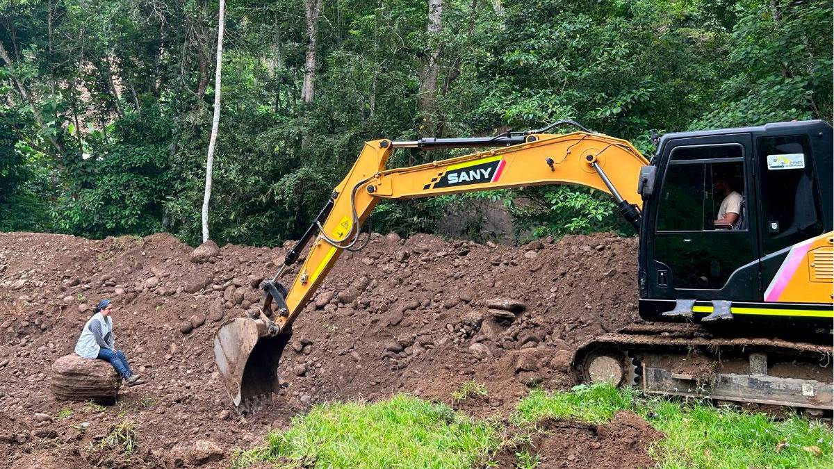 El camino de herradura o ‘camino real’ hasta la vereda no permitió el avance de la retroexcavadora, lo que implicó un despliegue logístico sin precedentes en la búsqueda en la subregión de Urabá. Por eso, esta maquinaria tuvo que ser movilizada río arriba, por más de tres kilómetros, desde el corregimiento de San José de Apartadó hasta el lugar de intervención, utilizando el lecho de la torrente como vía de acceso.