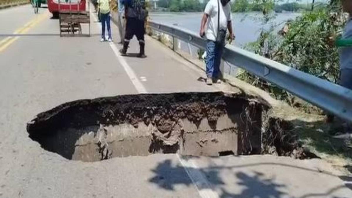 Este fue el enorme hueco de gran profundidad que surgió en el extremo del puente. FOTO: imagen tomada de redes