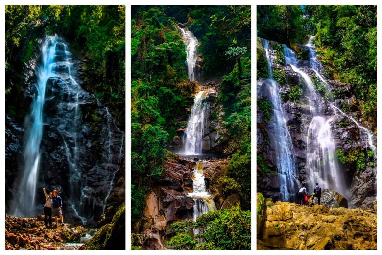 A menos de un kilómetro queda el mirador donde se ven completas las cascadas. Es un paraje para disfrutar, para abrir y cerrar los ojos y darse cuenta que tanta belleza existe. Si no quiere caminar, no hay problema, hasta el mirador se puede llegar en carro. Los más intrépidos podrán seguir la travesía hasta encontrar el río y empezar el ascenso hasta El Paraíso, la joya de la corona, la cascada más grande que no alcanza a aparecer en esta imagen. Se escala pegado de raíces, troncos y lo que aparezca para poder subir a sentir la fuerza imparable del agua, un fenómeno que se conoce como el efecto Lenard, la sensación auténtica de bienestar que genera la rica densidad iónica de una cascada.