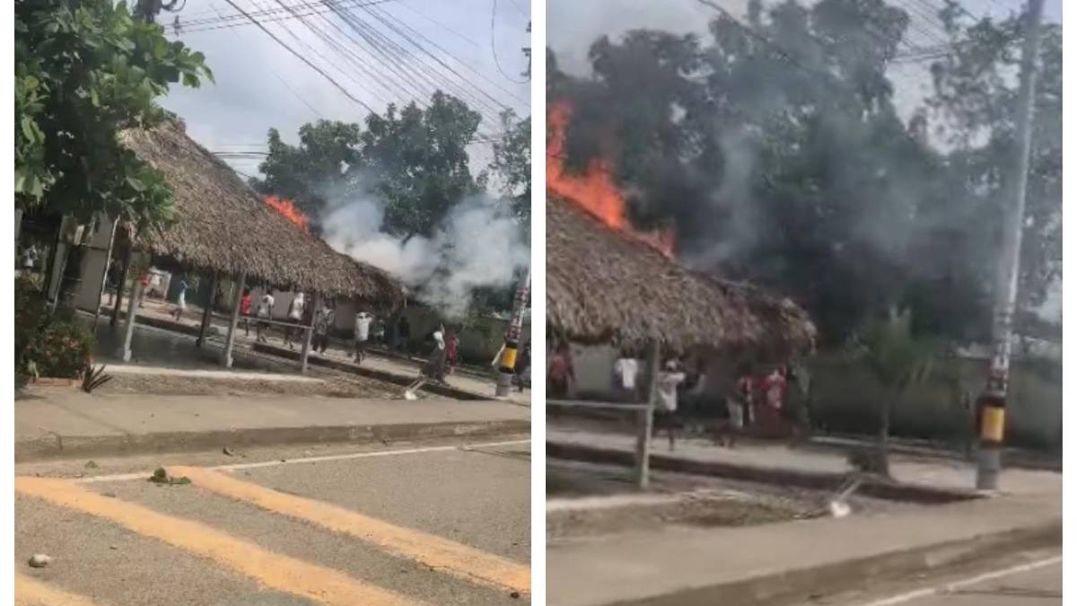 “En un video que se difundió en redes sociales, se evidencia cómo se está incinerando el techo de un kiosko. Al parecer, uno de los individuos que estaba lanzándole piedras a la Policía Nacional decide también ocasionar el incendio. Por intermedio de nuestro Puesto de Mando Unificado, se hace el enlace con los bomberos, quienes llegan de inmediato al lugar de los hechos y controlan la conflagración”, precisó el coronel Jovanni Cepeda Sanabria, comandante de la Policía Urabá.