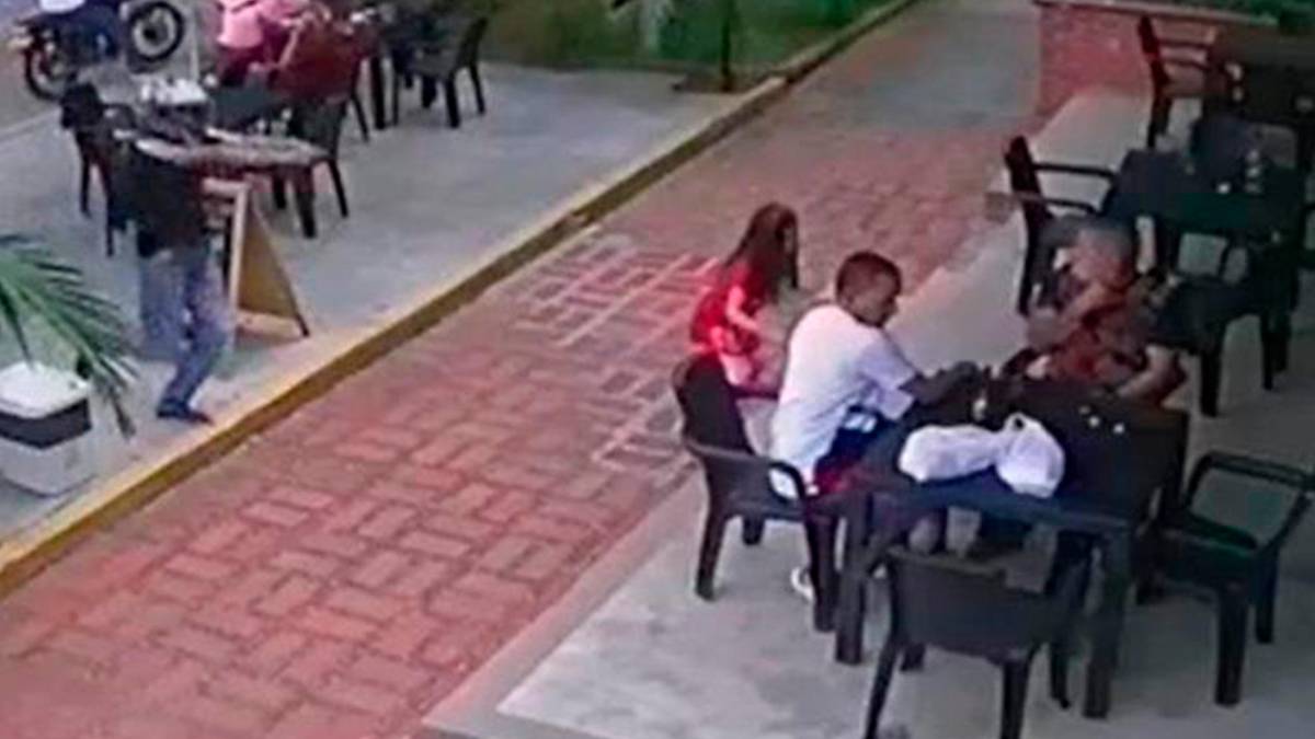 El hecho, aunque se hizo viral apenas ayer, ocurrió hace cinco días y quedó registrado en una cámara de seguridad que muestra cómo el delincuente llega apuntándoles a los dos hombres y en medio del forcejeo con uno de ellos se va en contra de la menor quien cae aparatosamente de espaldas antes de que otro hombre llegue afortunadamente a auxiliarla. Mientras tanto, los dos sujetos agredidos corren y en cámara se ve cómo el delincuente arrebata una manilla y una argolla de oro y se marcha corriendo hacia la moto.