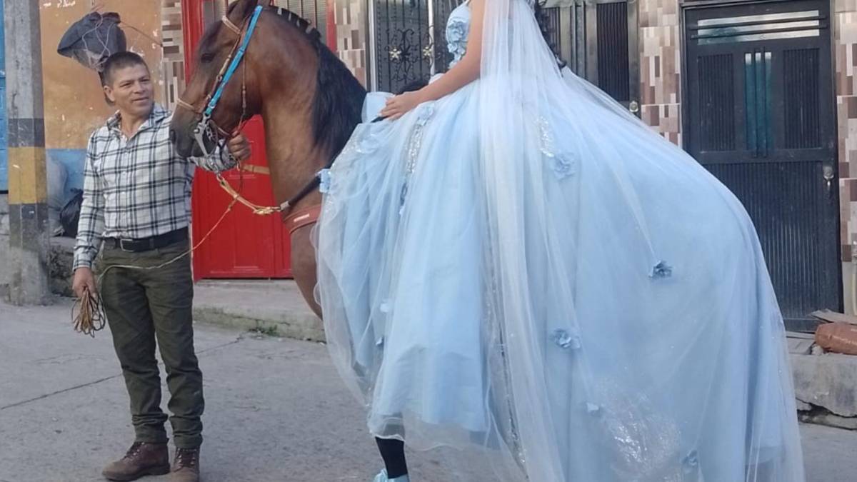 Según captó el lente del canal, la joven cabalgó vestida con su traje de quinceañera desde el sector de El Roble hasta la iglesia principal de Argelia, donde se realizaba el evento de celebración.