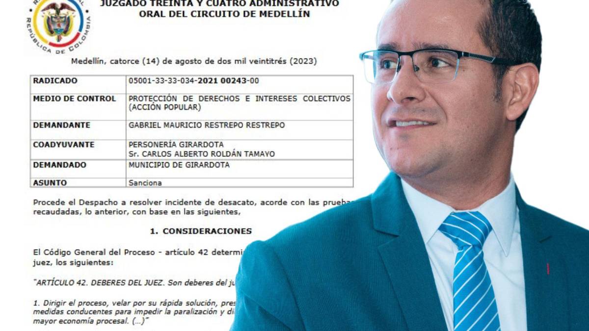 Un juzgado administrativo oral de Medellín sancionó al alcalde de Girardota, Diego Agudelo Torres, por desacato al cumplimiento de una sentencia previa ratificada en noviembre de 2022.