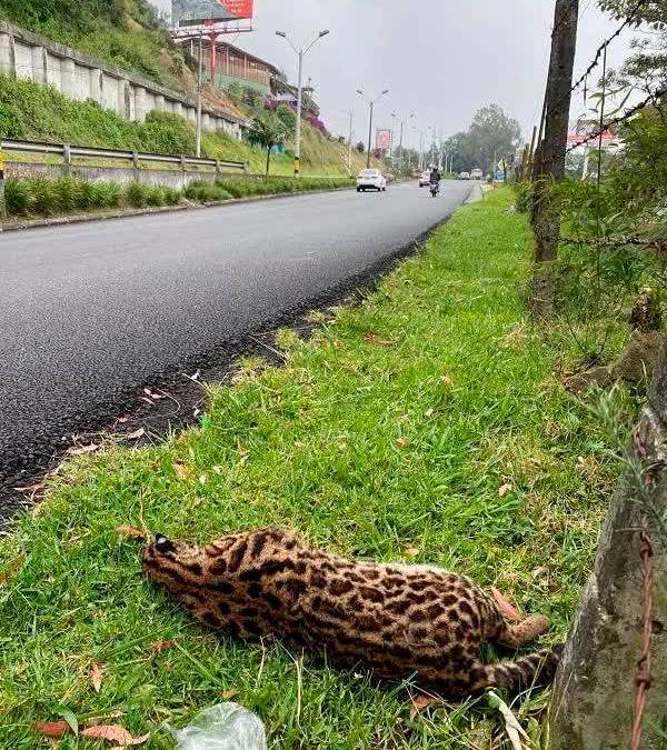 Un tigrillo muerto fue hallado este martes sobre la vía Las Palmas, a la altura de la salida de la Transversal de la Montaña, jurisdicción de Envigado.