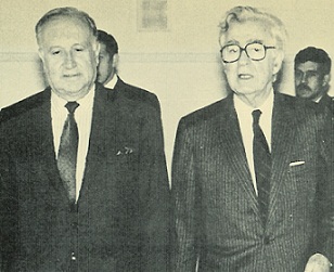 | Sucedió hace 25 años 1988 Consejo de Estado suspende Acuerdo de la Casa de Nariño El Consejo de Estado dejó temporalmente sin efectos el llamado Acuerdo de la Casa de Nariño, mediante el cual el presidente Barco y el jefe de la oposición social conservadora, Misael Pastrana, en la foto, se comprometieron a impulsar una reforma constitucional por vía de la consulta popular. De este modo queda sin piso jurídico el referéndum programado para el 9 de octubre próximo. El gobierno y los partidos políticos acataron la decisión pero advirtieron que los propósitos del acuerdo siguen vigentes y saldrán adelante mediante nuevos mecanismos. Sucedió hace 50 años Una vía de importancia |