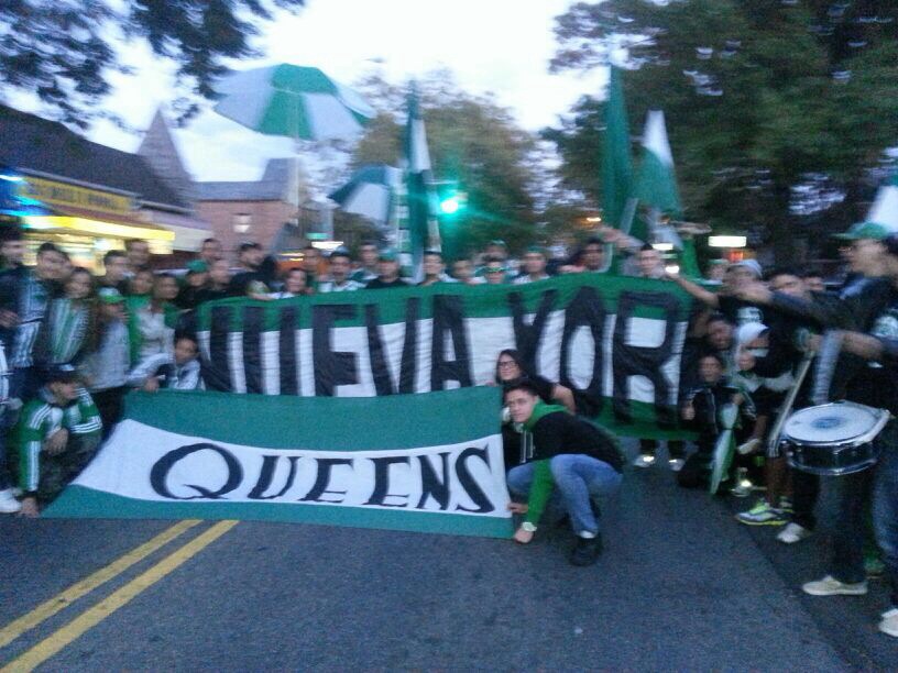 El pasado partido entre Millonarios y Nacional, lo pude vivir en Nueva York, una ciudad que está plagada de inmigrantes (legales e ilegales), de todas partes del mundo, donde una de las colonias más grandes es la Colombiana y por supuesto, gran parte de esa colonia es hincha del verde. Es increíble caminar por las calles de Queens, Manhattan, el Times Square y encontrar gente que apenas veía el escudo del Verde de mi chaqueta, paraban a darme la mano y decirme “hoy ganamos”, como si estuviera caminado por el parque Berrio o por el Lleras, el sentimiento por el Verde pareciera que se incrementara con la distancia. |