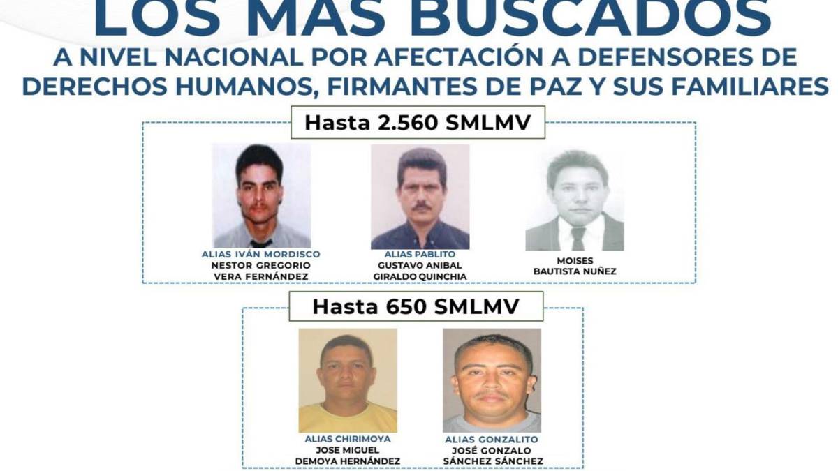Los 78 criminales, son buscados principalmente por múltiples delitos contra líderes sociales, firmantes de paz y defensores de derechos humanos. Iván Mordisco, por ejemplo, tiene siete órdenes de captura y está señalado por la muerte de 16 líderes indígenas y 10 firmantes de paz.