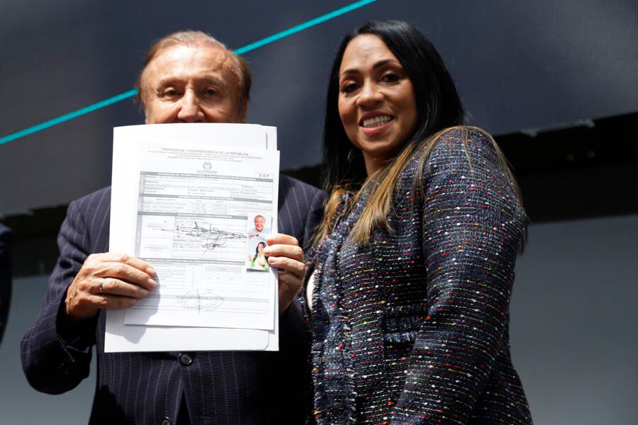Rodolfo Hernández y Marelen Castillo en la inscripción de su candidatura presidencial. FOTO: COLPRENSA.