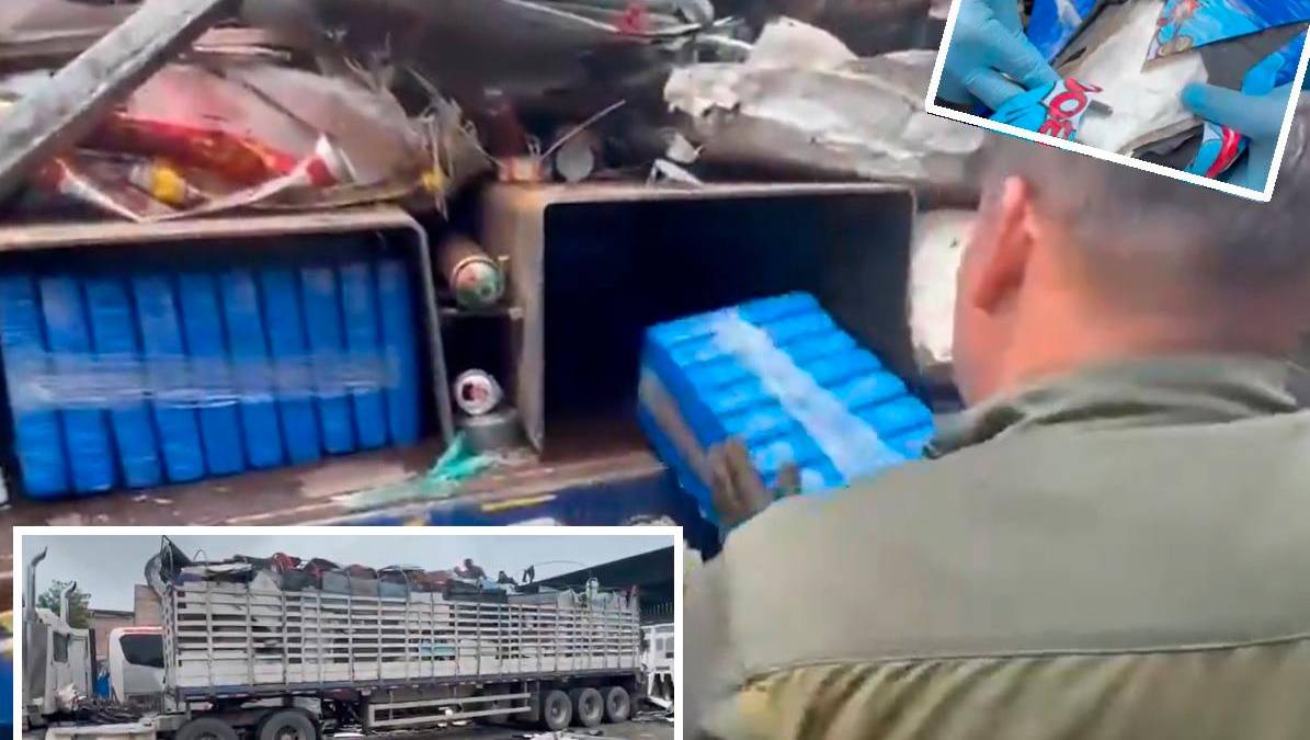 La cocaína estaba escondida en un compartimento secreto, debajo de la chatarra que transportaba el camión. FOTOS: CORTESÍA DE LA POLICÍA.