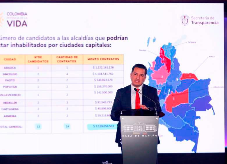 El sorpresivo informe fue lanzado por la Secretaría de Transparencia de la Presidencia de la República y reveló 533 nombres de candidatos que, supuestamente, estarían inhabilitados para las elecciones porque celebraron contratos con el Estado recientemente, una acción que prohíbe la Ley.