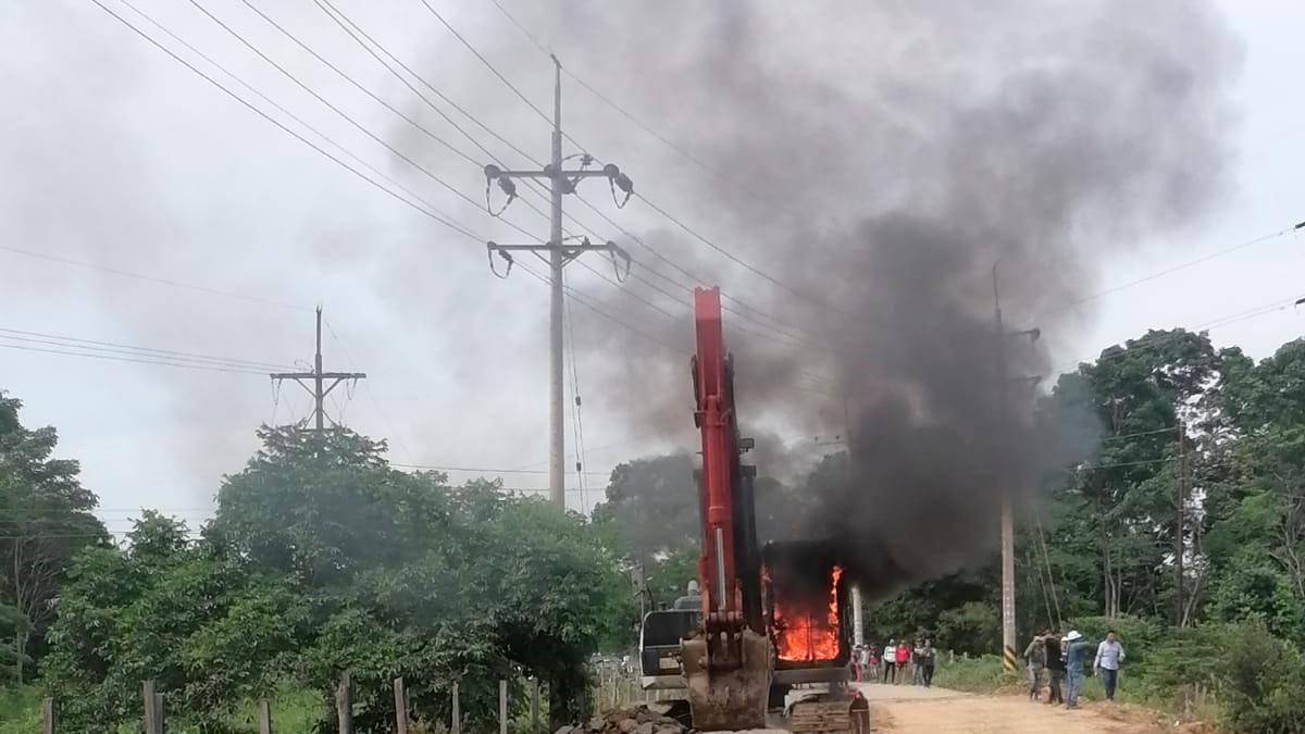 Criminales quemaron retroexcavadora que reparaba la vía entre Tibú y Cúcuta