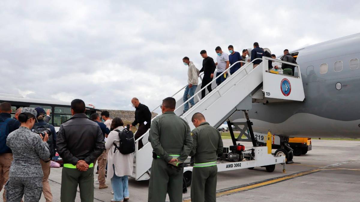• Este fue uno de los vuelos con deportados colombianos que aterrizó en Bogotá esta semana. FOTO CANCILLERÍA
