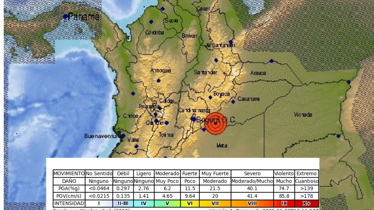 El sismo tuvo epicentro en Paratebueno (Cundinamarca) a 5 km, Medina (Cundinamarca) y ocurrió exactamente a las 8:08 a.m. de este domingo.
