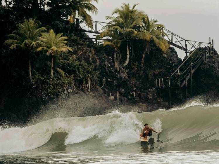 “Mis padres me apoyaron, más allá que al comienzo si se preguntaban por qué quería hacer algo contracultural para nosotros. Pero al ver que estaba sólido en mi proyecto me entendieron. En Nuquí, por tener un plato de comida y poder estar sobre una tabla, trabajé en hoteles, cortando césped, limpiando casas, en carpintería... Si había que tapar un hueco, allá estaba yo. Así fue como ahorré para comprar mi primera tabla”.