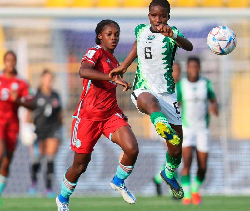 Minuto 57: la atacante nigeriana Opeyemi Ajakaye generó una opción de riesgo sobre el área colombiana que no encontró el arco.