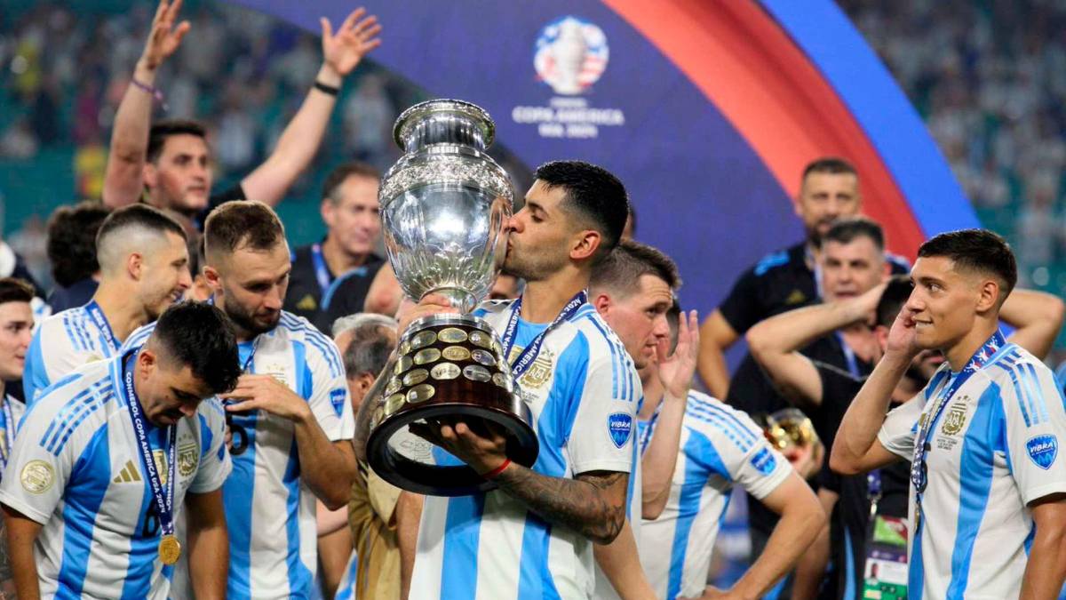 • Los jugadores de la Selección Argentina celebrando el título de la Copa América en Estados Unidos. FOTO TOMADA @Argentina