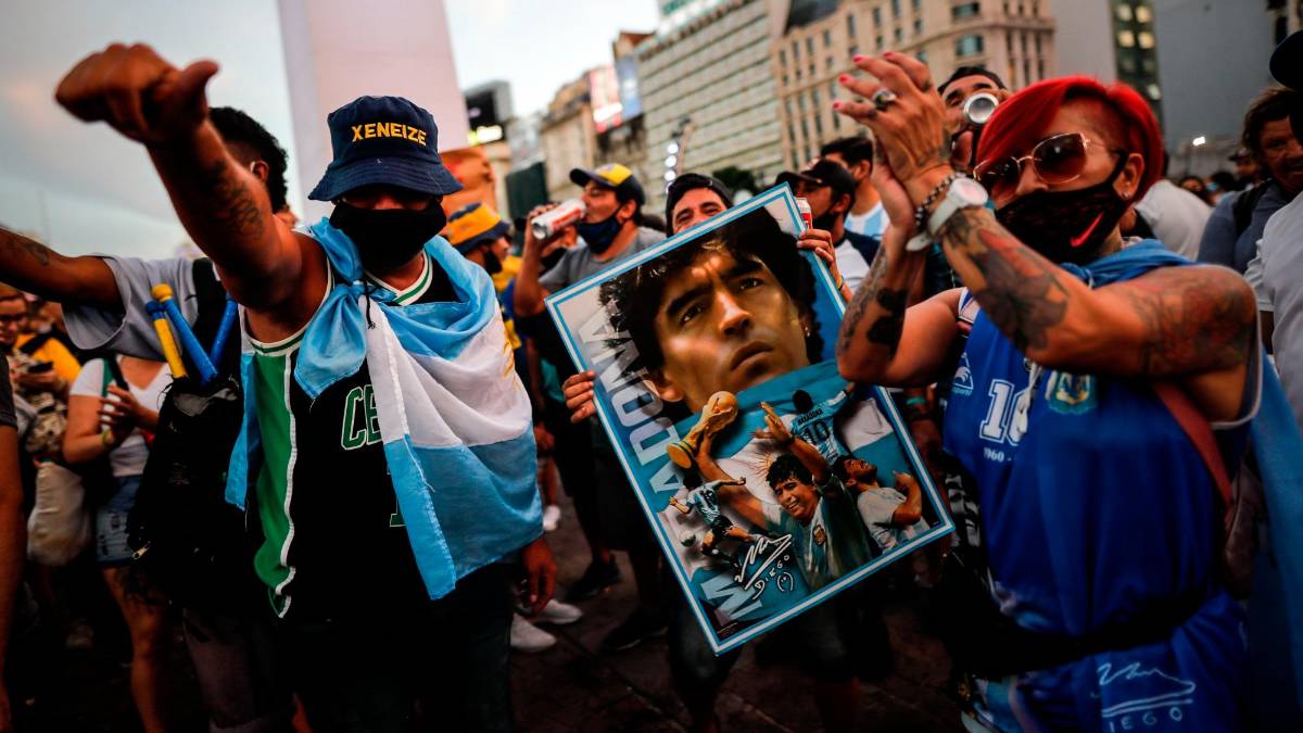 La convocatoria fue este miércoles, pero hasta este jueves se mantenían las marchas en las inmediaciones del Obelisco de los fanáticos del popular “Pelusa”.