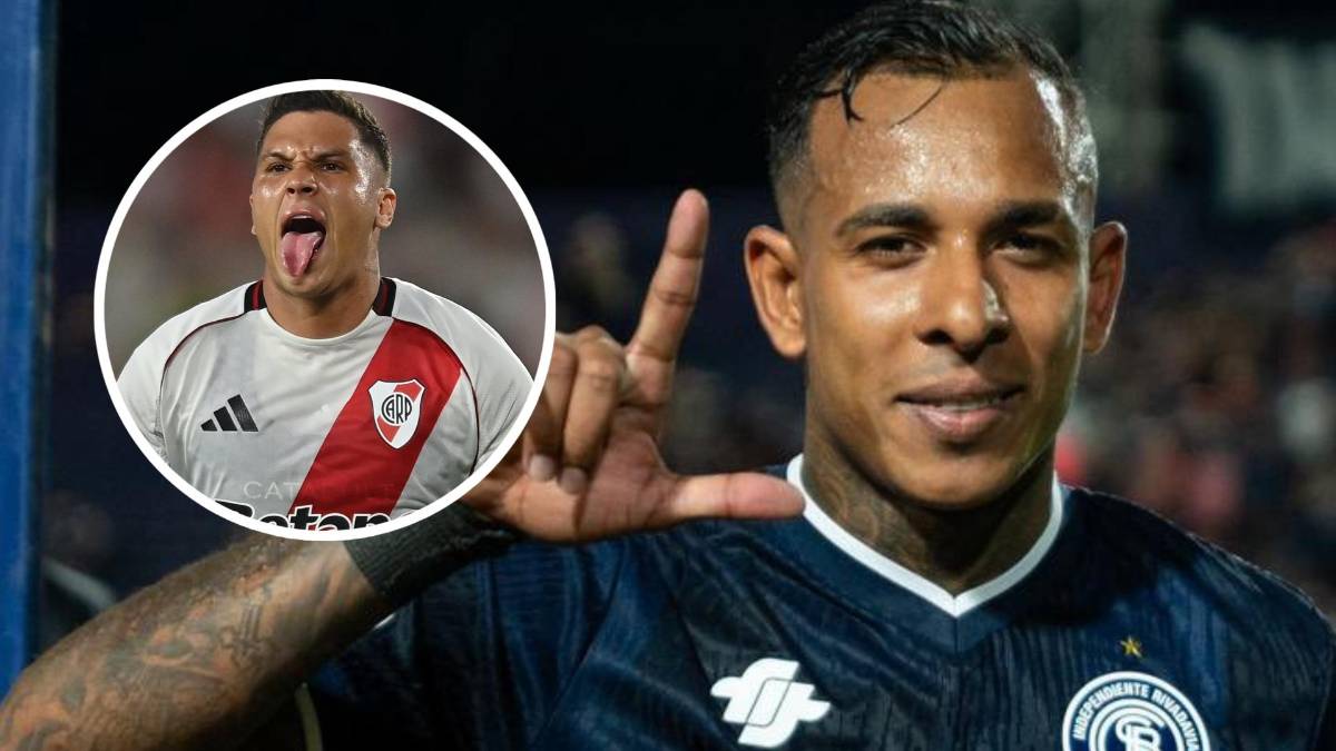 Después de la victoria de Independiente Rivadavia sobre Sarmiento, el extremo colombiano fue consultado por su negociación con River Plate en el último mercado y no lo descartó del todo. FOTO: Tomada de redes sociales @CSIRoficial y @RiverPlate