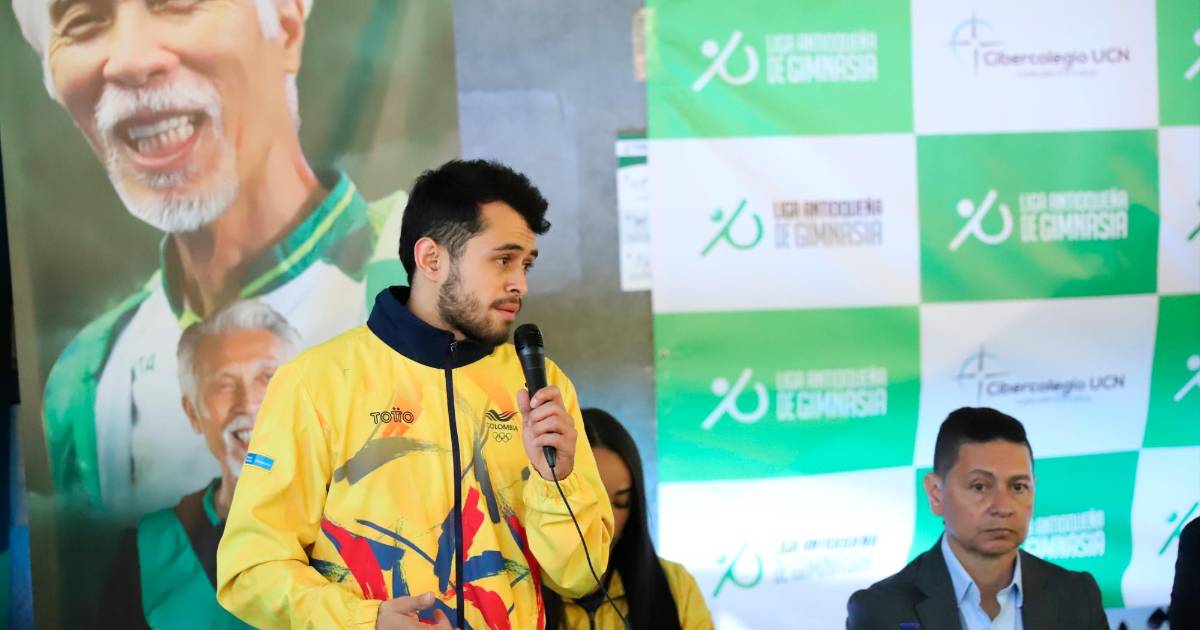 • Andrés Martínez, gimnasta de la Selección Colombia, participó en la presentación del Panamericano que se hará en Medellín. FOTO COrtesía LAG