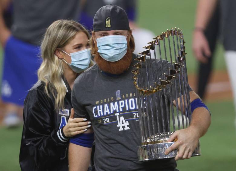 Justin Turner, figura de los Dodgers de Los Ángeles, tuvo que abandonar el juego del martes de la Serie Mundial por dar positivo en una prueba de coronavirus, pero posteriormente regresó a la cancha para festejar el título junto a sus compañeros.