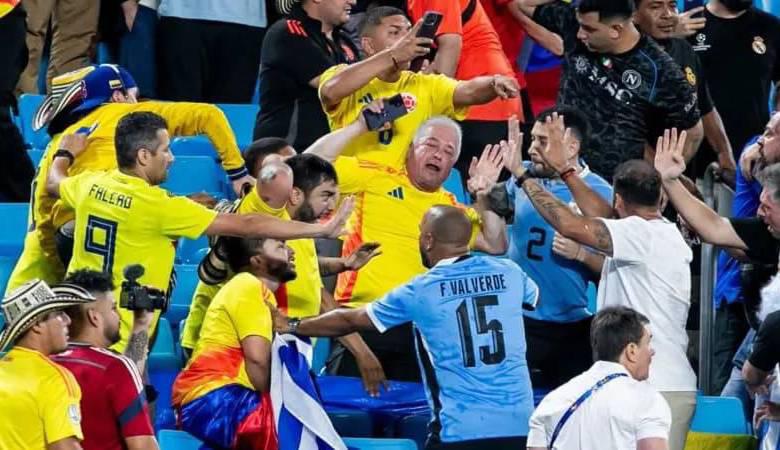 Videos e imágenes de los jugadores uruguayos intercambiando golpes con los fanáticos de la tricolor en las tribunas del estadio Bank of America, en Charlotte, le dieron la vuelta al continente. Incluso el delantero del Liverpool, Darwin Núñez, quedó en video tras intentar lanzar una silla a los hinchas de Colombia.