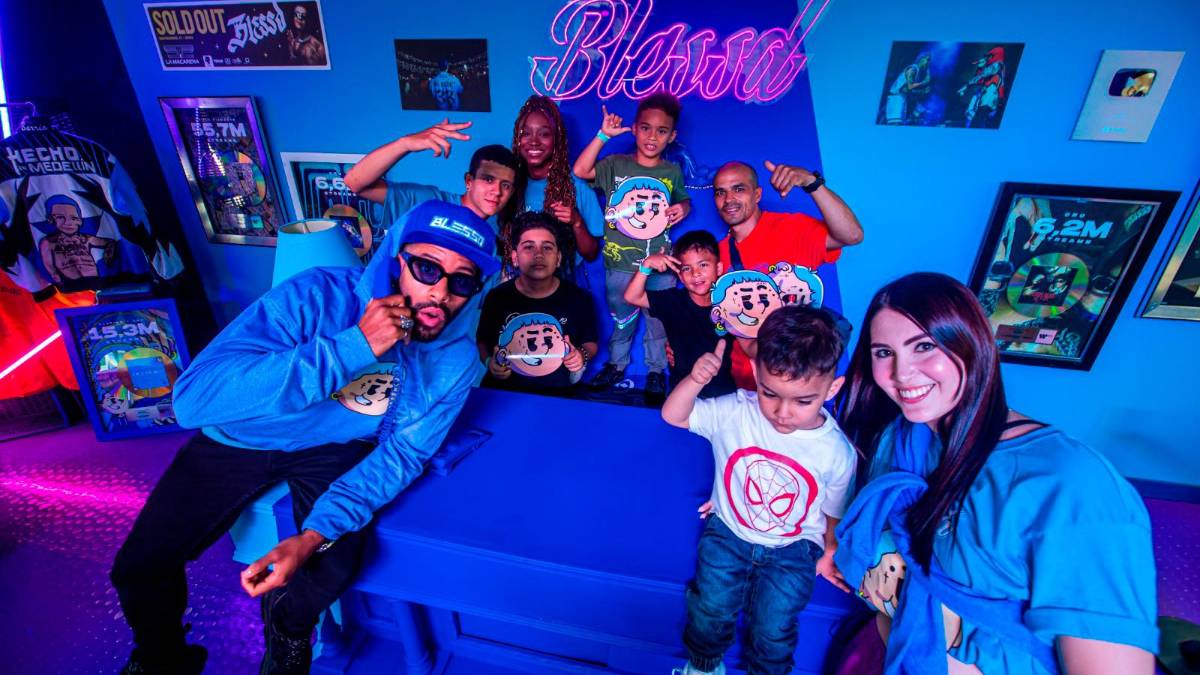 El espacio empieza en una recepción en la que incluso se le da la bienvenida a la gente con uno de los íconos más representativos de sus inicios, los dulces con los que pagó sus primeras grabaciones. El siguiente espacio, explica Warner Music, guarda la magia de una de las aficiones más grandes del Blessd, el fútbol: “Aquí encontrarán cuatro de las camisetas más preciadas que tiene en su colección, la de Zidane, Beckham, Muñoz y Lucho Díaz; y un futbolito en el que se inmortaliza el clásico de Medellín entre verdes y rojos”.