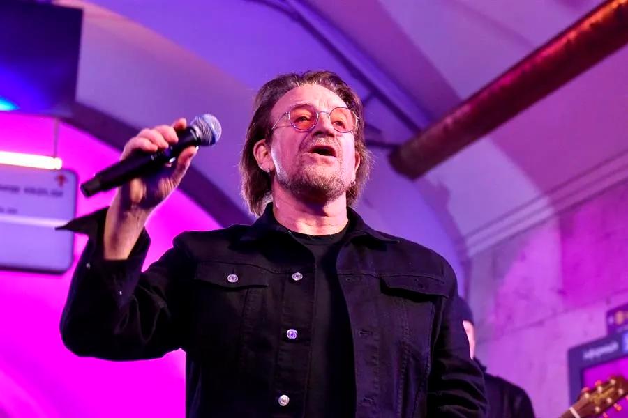 • El cantante Bono ha liderado varias campañas mundiales de ayuda humanitaria. Hace pocos días ofreció un concierto sorpresa en Ucrania. FOTO: Efe.