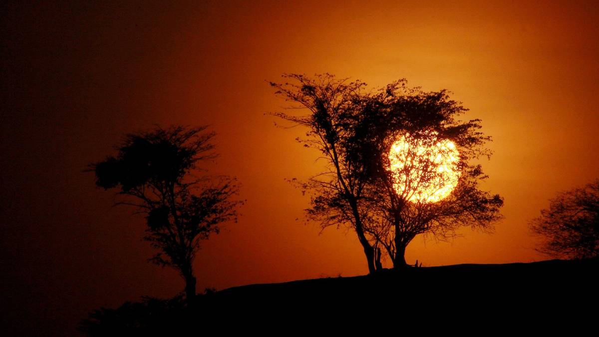 El Sol. El Rey. El dios adorado por todos los pueblos. El ave que resucita todos los días. El astro que cobija con su luz de misericordia al mundo —“a malos y a buenos”—. La foto lo atrapa detrás de un árbol de pocas hojas: parece que se incendia, como la zarza que se quema, pero no se consume. Asistimos a un nuevo milagro, a un prodigio.