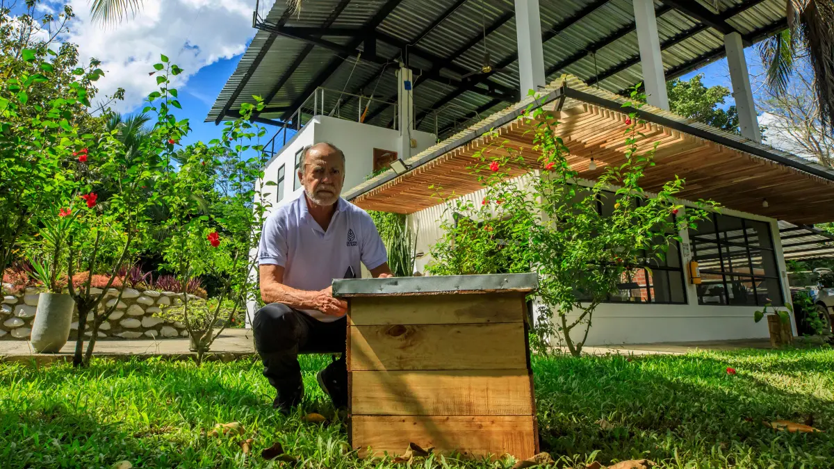 De ese proceso surgió otra oportunidad: las abejas. En la primera entresaca del bosque la gente pedía veneno para las “avispas”, pero eran colmenas. Decidieron aprender y en tres años crearon 12.000 colmenas. El Bajo Cauca producía 10 toneladas de miel al año, hoy produce más de 450.