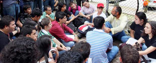 Uno de los profesores que atendió la convocatoria fue Jaime Arturo Gómez. Se sentó del lado de la calle donde con carteles marcaron el lugar de su aula y un improvisado auditorio de alumnos lo escuchó. Del otro lado estaba la U. sin estudiantes, sin clases.