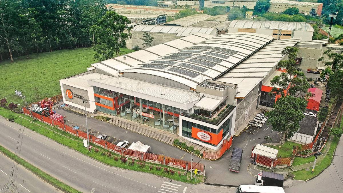 • Vista aérea de la planta de Espumas Medellín y los paneles solares sobre su cubierta. FOTO CORTESÍA