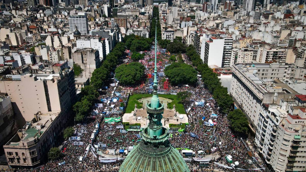 Esta fue la primera manifestación de alcance nacional contra el gobierno y sus drásticas medidas de ajuste con las que busca contener una inflación anual de 211%, récord en 30 añosArgentina tiene una sociedad civil muy articulada, muy organizada”, dijo a la AFP Iván Schuliaquer, politólogo de la Universidad Nacional de San Martín. “Y esa capilaridad política que existe en la Argentina es muy fuerte y, de manera muy clara, está en general movilizada contra Milei”.