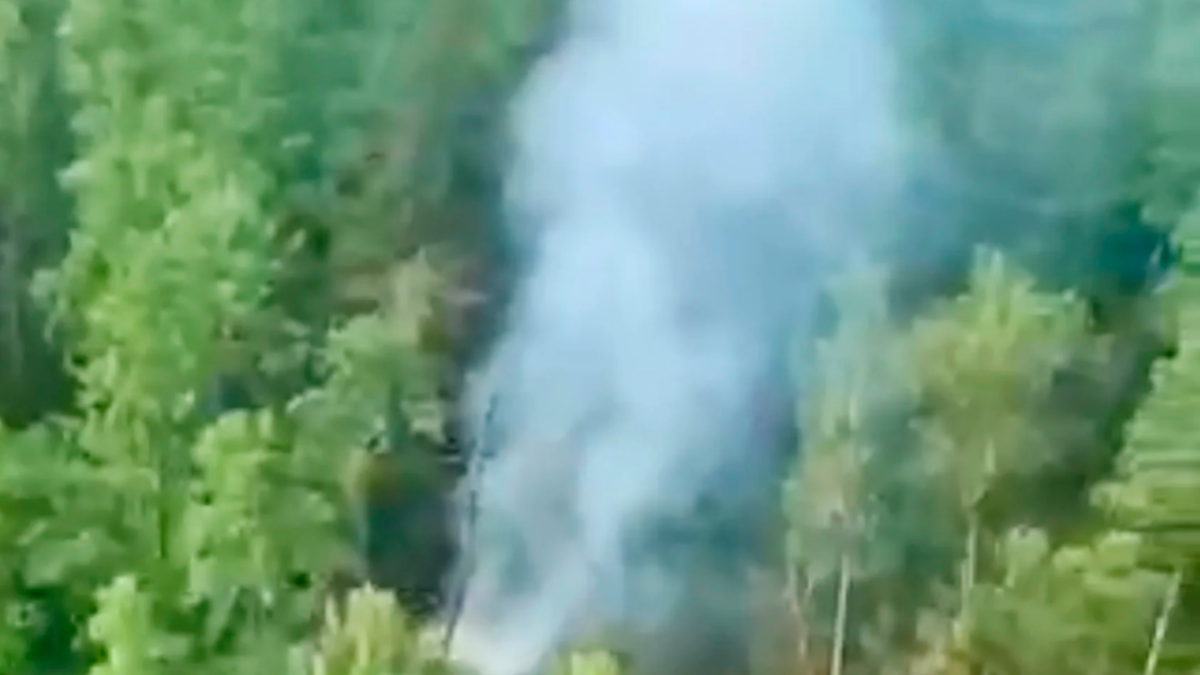 En las imágenes se ve una columna de humo que se eleva en medio de numerosos árboles y llamas cerca de lo que parecen ser restos del aparato.