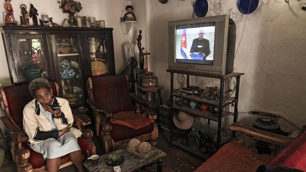 • Una mujer escucha al presidente de Cuba, Miguel Díaz-Canel, hablar en la televisión nacional desde su casa en La Habana el 5 de febrero de 2026. Aquí se anunció que el régimen de la isla está dispuesto a entablar diálogo con Estados Unidos, pero no bajo presión. Foto: Yamil Lage / AFP