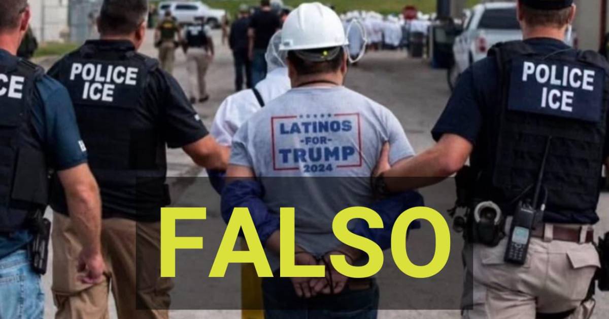 La imagen original fue tomada por Smith Collection/Gado y fue publicada en 2018 por la agencia Getty. Y, a pesar de que sí se trata del arresto de un migrante irregular, la camiseta de la persona detenida no tiene el letrero de “Latinos por Trump” con el que alteraron la imagen en medio de esta coyuntura.