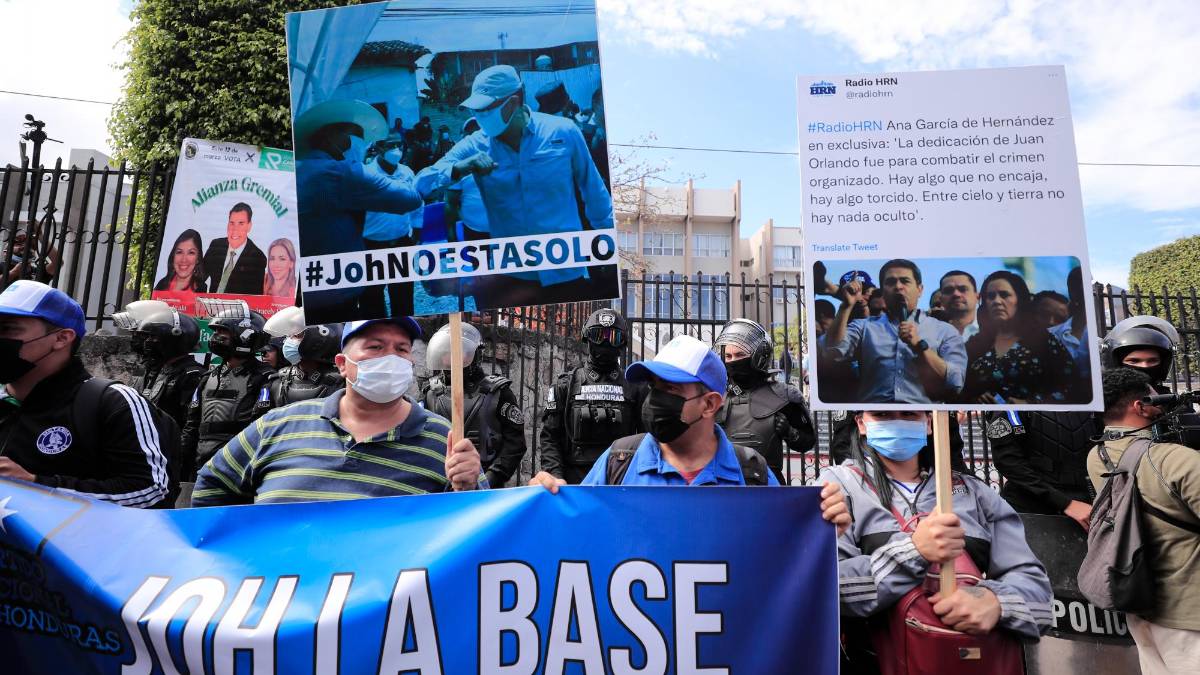 En los exteriores de la sede de los tribunales en la capital, simpatizantes del Partido Nacional (derecha), al que pertenece Hernández, llegaron para clamar por la “inocencia” del expresidente.