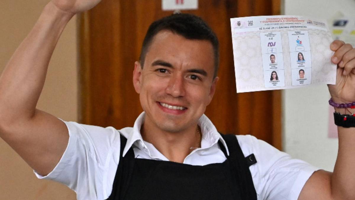 • El empresario derrotó a la izquierdista Luisa González, en un ambiente violento en el país. FOTO: Twitter @DanielNoboaOk