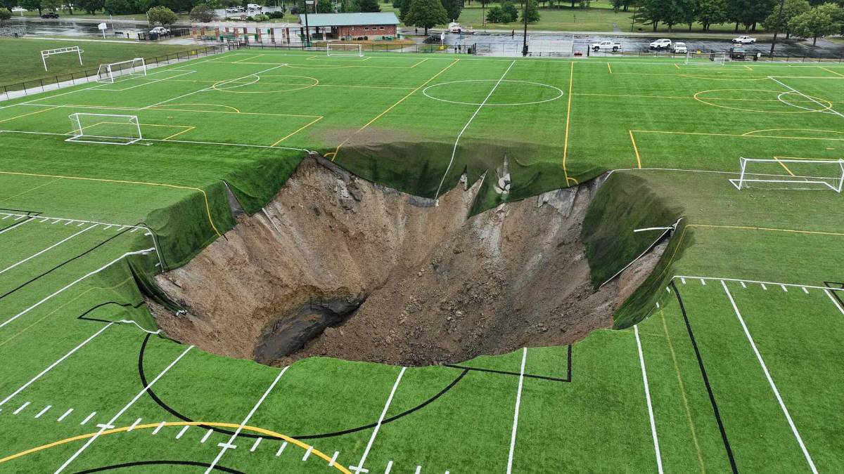 Como si fuese un efecto de una película de Marvel, en una cancha de fútbol de un parque de Illinois, Estados Unidos, se abrió un enorme socavón de aproximadamente 100 pies de ancho, este miércoles 26 de junio, tragándose consigo un poste de electricidad y dejando a su paso su rastro: un enorme y profundo hueco en la cancha de fútbol.