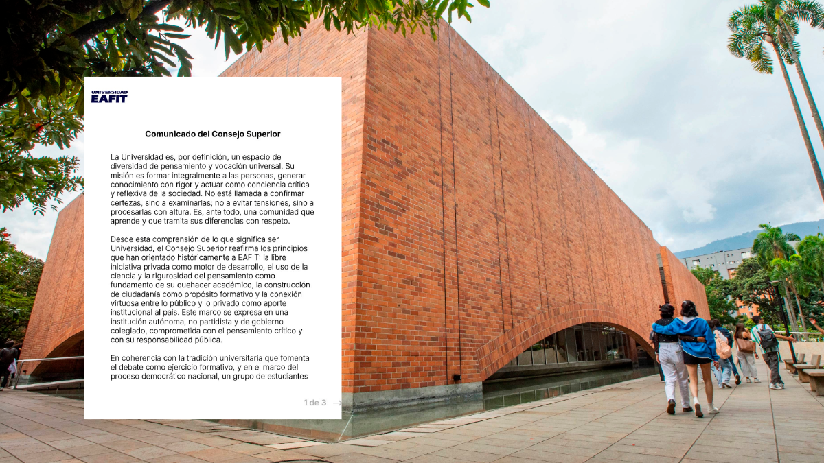 El Consejo Superior de la Universidad Eafit emitió este miércoles un pronunciamiento tras la controversia generada por un foro político realizado el pasado 25 de febrero en el auditorio Fundadores.