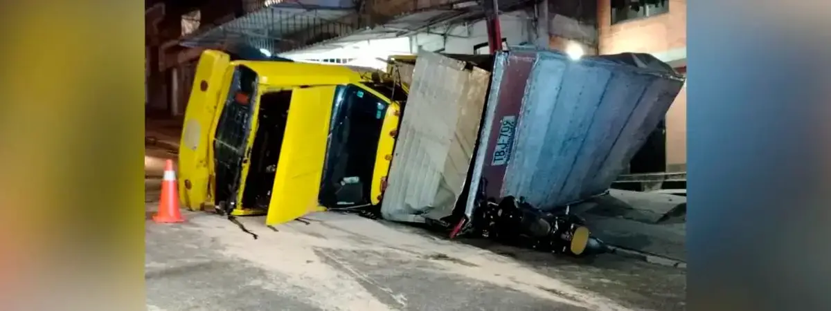 • En las lomas de Manrique no hay quién suba: camión terminó volcado