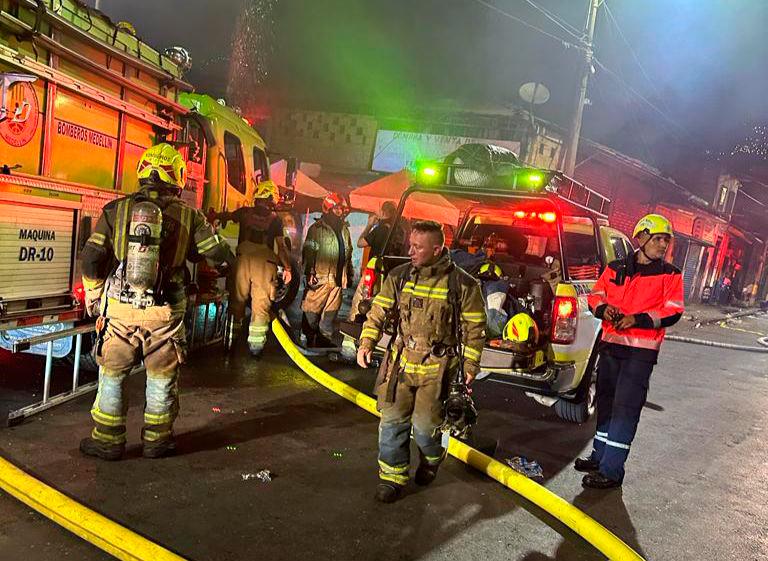 Finalmente, con 22 bomberos y seis maquinas de cuatro estaciones, se atendió en la madrugada de este miércoles 2 de agosto un incendio estructural que comprometió cuatro niveles, en un local comercial de reciclaje en la comuna 10, del Centro de Medellín.