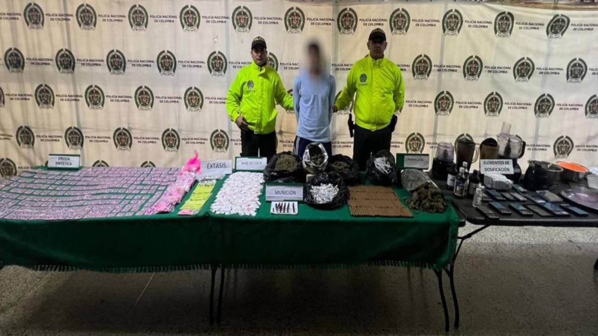 Allí fue capturado un hombre de 29 años a quien se le encontraron 18 cartuchos para pistola calibre 38, 740 gramos de base de coca, 909 gramos de droga sintética y 3.702 gramos de marihuana.