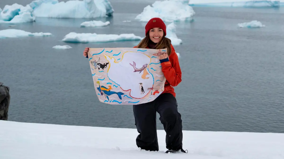 • Bandera de niños de colegio de Colombia en la Antártida, en colaboración con APECS Colombia. FOTO cortesía James Bradley y APECS