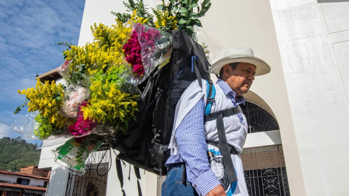 Luego de comparar sus flores, llega hasta la fachada de la parroquia gracias a una cuenta minuciosa de los pasos que lo llevan a diferentes lugares y que fue un gran reto después de perder la visión. Foto: Esneyder Gutiérrez -